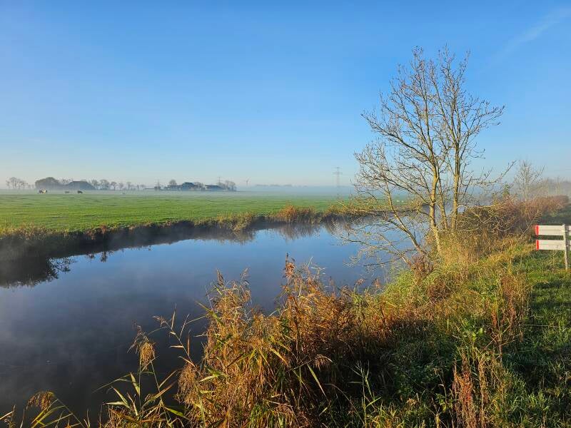 De route brengt ons kort langs de N361, waar het even wat minder idyllisch is. Het verkeer zoeft voorbij, en het contrast met de serene rust van het Groningse platteland is bijna voelbaar. Toch doet het ons dromen: hoe mooi zou het zijn als hier ooit een wandelpad door de weilanden komt? Misschien, ooit in de toekomst.